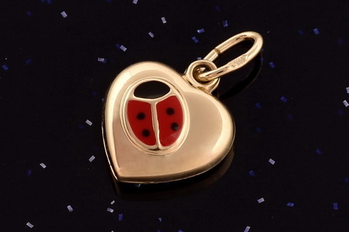 Zlatý přívěsek srdce s beruškou P089, Au 585/1000 14kt, 0,35g